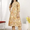 - This awesome beige chandri silk kurti and pant set features a stunning floral print, offering a perfect blend of elegance and comfort.