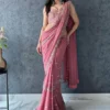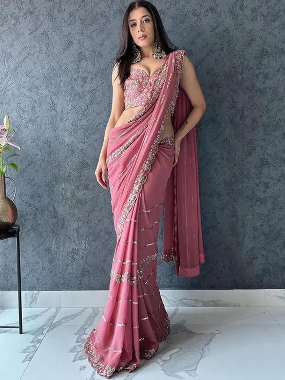 Pink and Majenta color Saree in Georgette fabric with Embroidered, Sequence, Thread work
