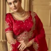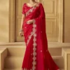 Red and Maroon color Saree in Organza Silk fabric with Sequence, Stone, Thread, Zari work