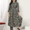 • Pretty Navy Blue rayon silk casual wear kurti and pant set featuring a stunning floral print for an elegant look.
